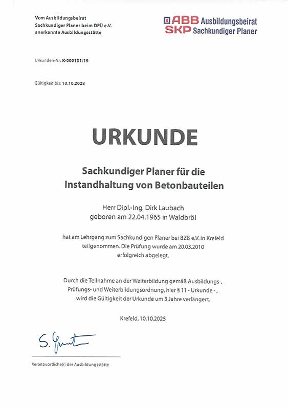 - Sachkundiger Planer für Betonschäden und Betoninstandsetzung